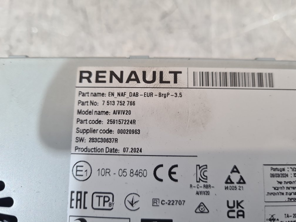 2024 RENAULT TRAFIC MULTIMEDIA HEAD UNIT RADIO SCREEN 259157224R